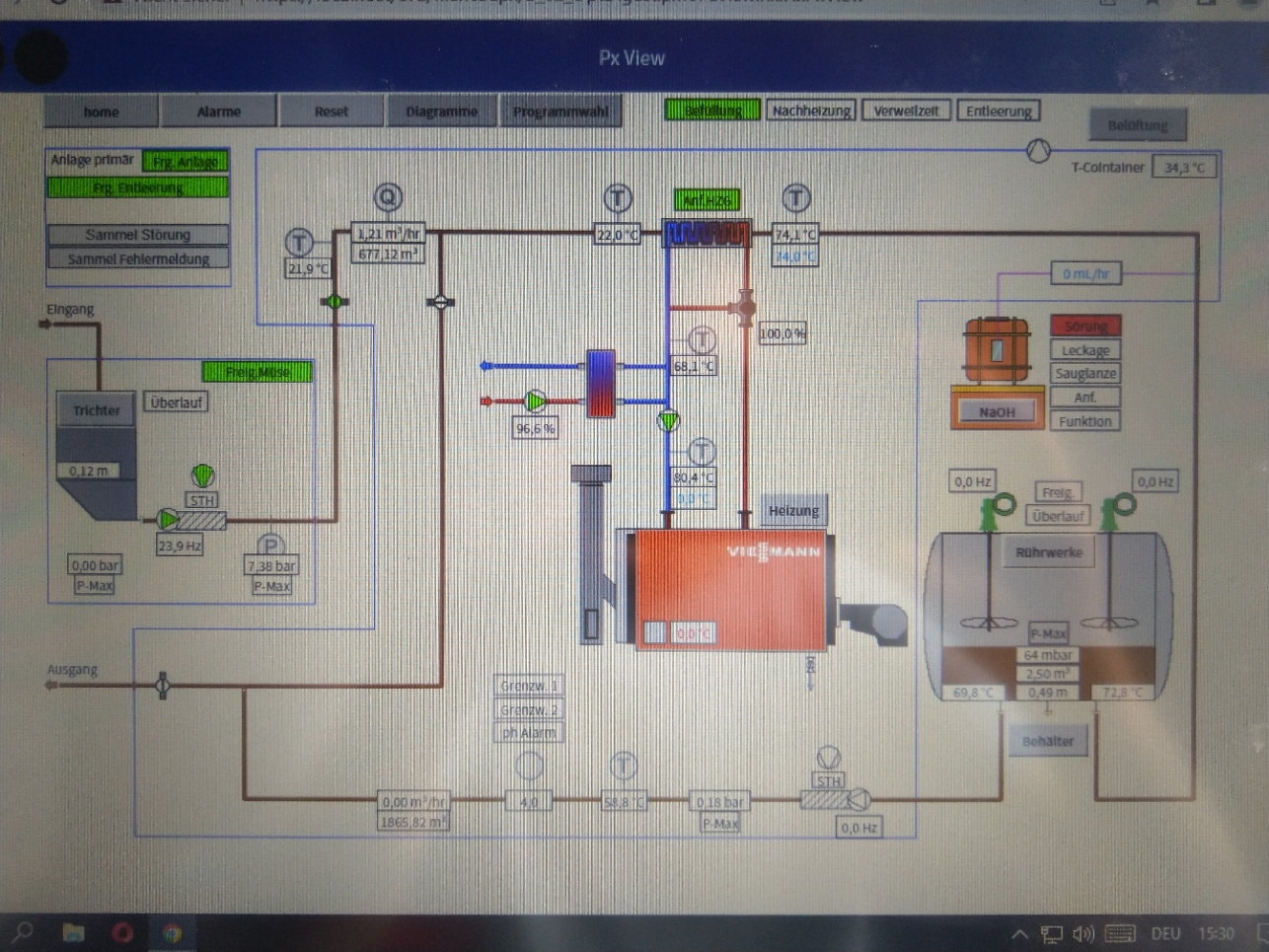 Mit dieser Anlage wird der Überschussschlamm thermisch behandelt, sodaß die Zellstruktur der Biomasse aufgeschlossen wird. Damit soll das Schaumpotential im Faulturm messbar gemindert werden und als Nebeneffekt die Gasausbeute verbessert werden.