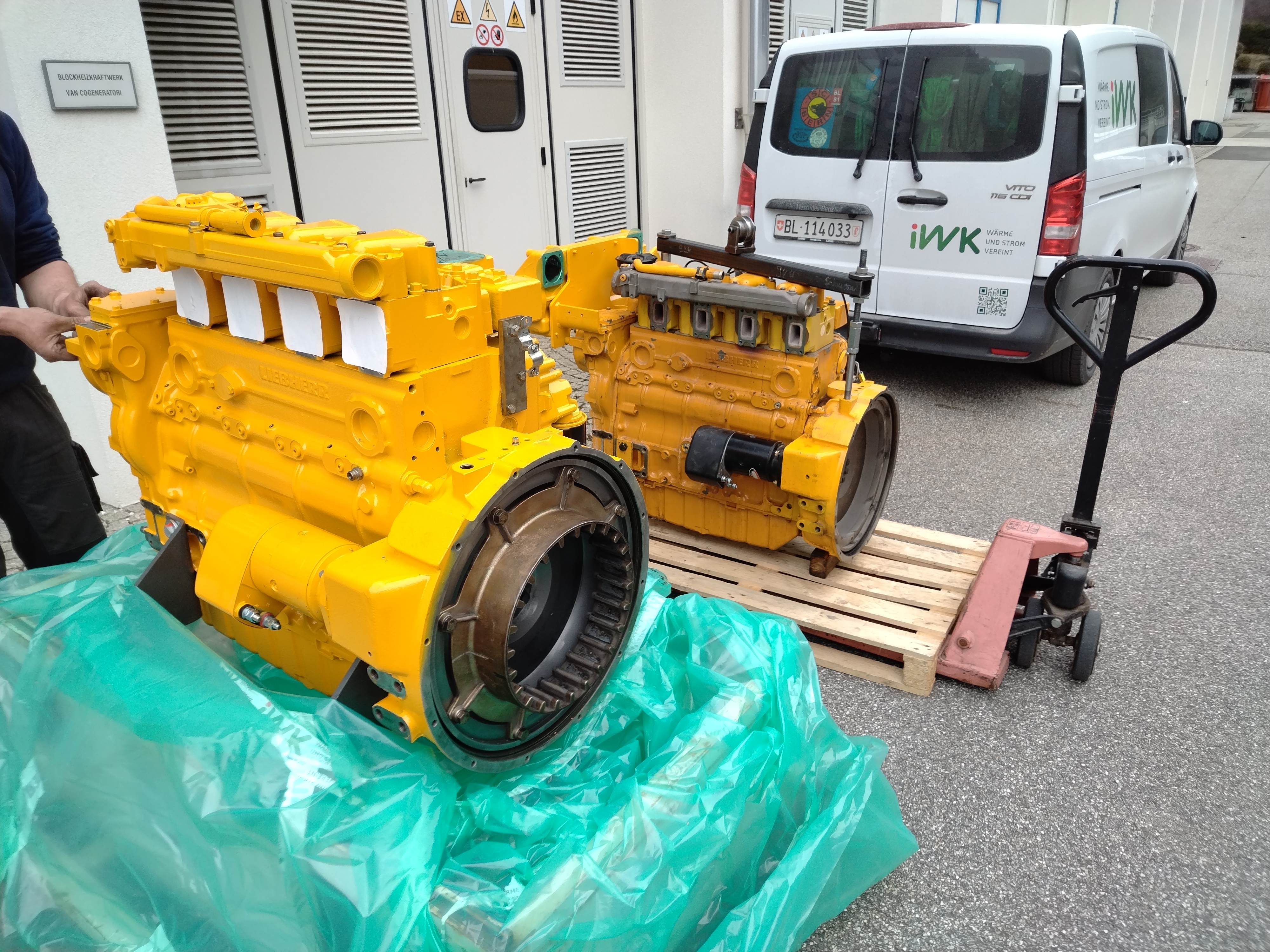 Dazu wird das BHKW komplett auseinander genommen, die alten Gasmotoren werden ausgebaut und die neuen Motoren werden wieder eingesetzt.