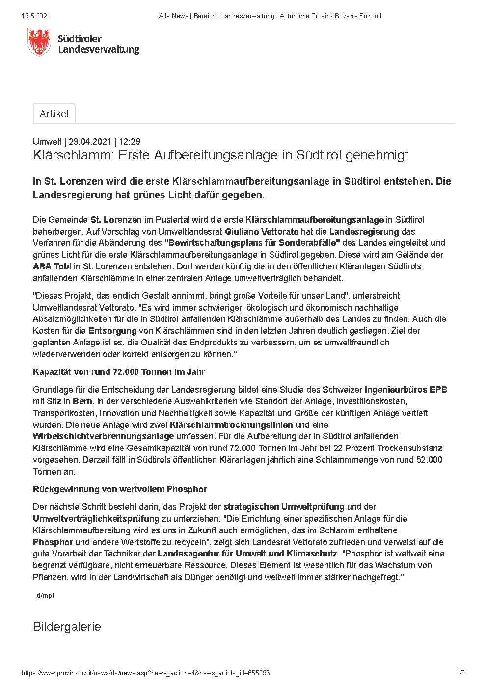 The basis for the state government's decision was a study by the Swiss engineering firm EPB, based in Bern. According to the press release of the state government dated 29.04.2021, the amendment of the "Management Plan for Hazardous Waste" has now been initiated and the green light has been given for the processing plant in Tobl.