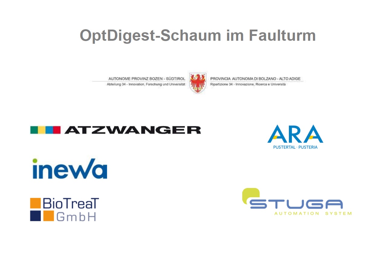 Due to the necessary conversion of the energy supply to renewable energy sources and the current shortage of natural gas, biogas production is becoming increasingly important. Sewage treatment plants are present throughout South Tyrol and have a considerable potential for the production of renewable energy in the form of biogas, they can therefore make an interesting contribution to the climate plan. The anaerobic process for the production of biogas from sewage sludge is well known and technically established, but can and must be optimized in some aspects. One of them is the formation of foam in digesters. This phenomenon is well known in the literature and causes problems for process engineering and plant maintenance. In the industrial research project "OptDigest", several companies in this field are collaborating to study this phenomenon and propose effective strategies to reduce foam in the fermentation process. As part of the project, the technical know-how of Atzwanger AG engineers was made available for the construction of a pilot plant for the pre-treatment of sewage sludge in order to minimize foaming. After initial laboratory tests, the pilot plant was installed at the Unteres Pustertal wastewater treatment plant.