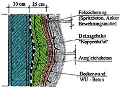 - 2nd layer: shotcrete 10 cm HS cement, reinforcement mat, diam. 5/20/20