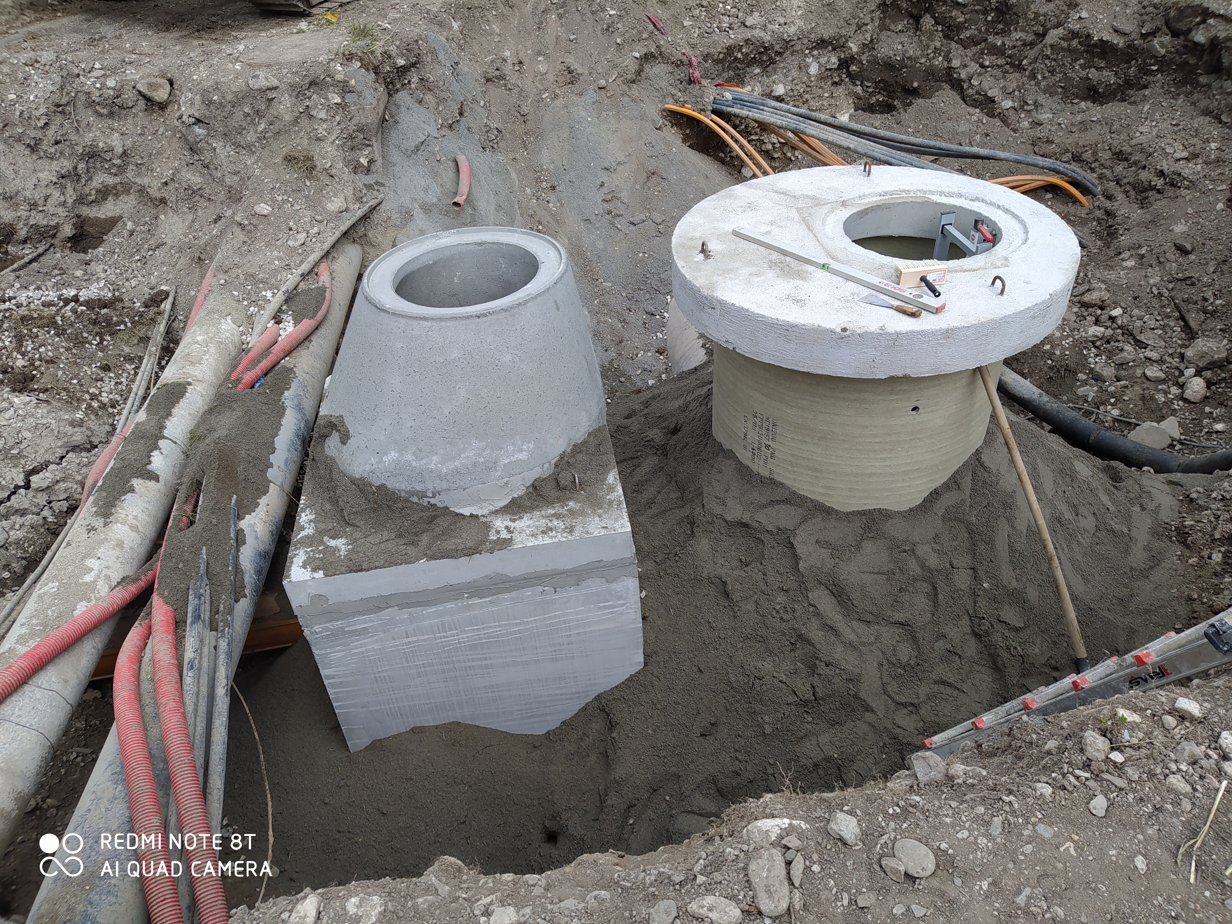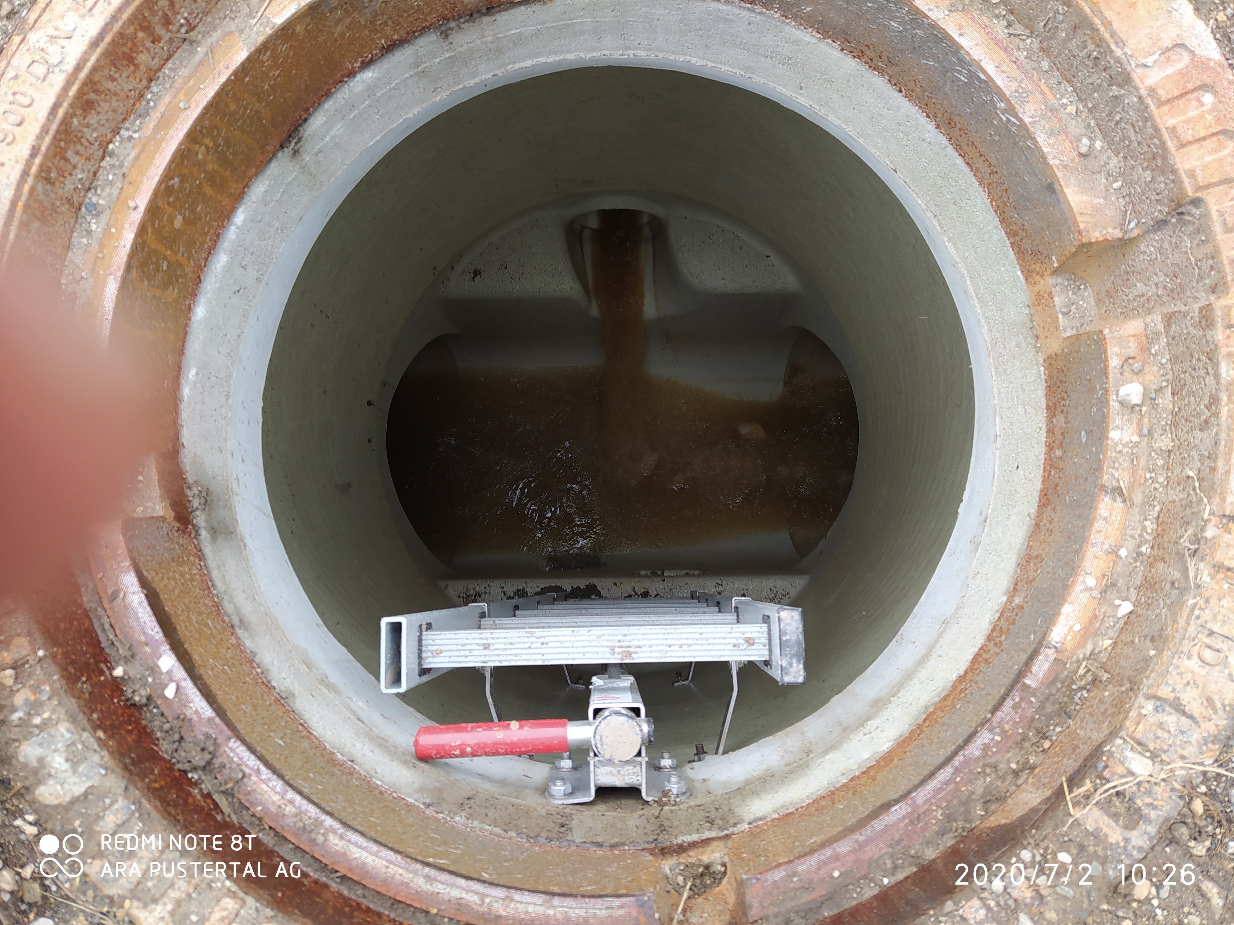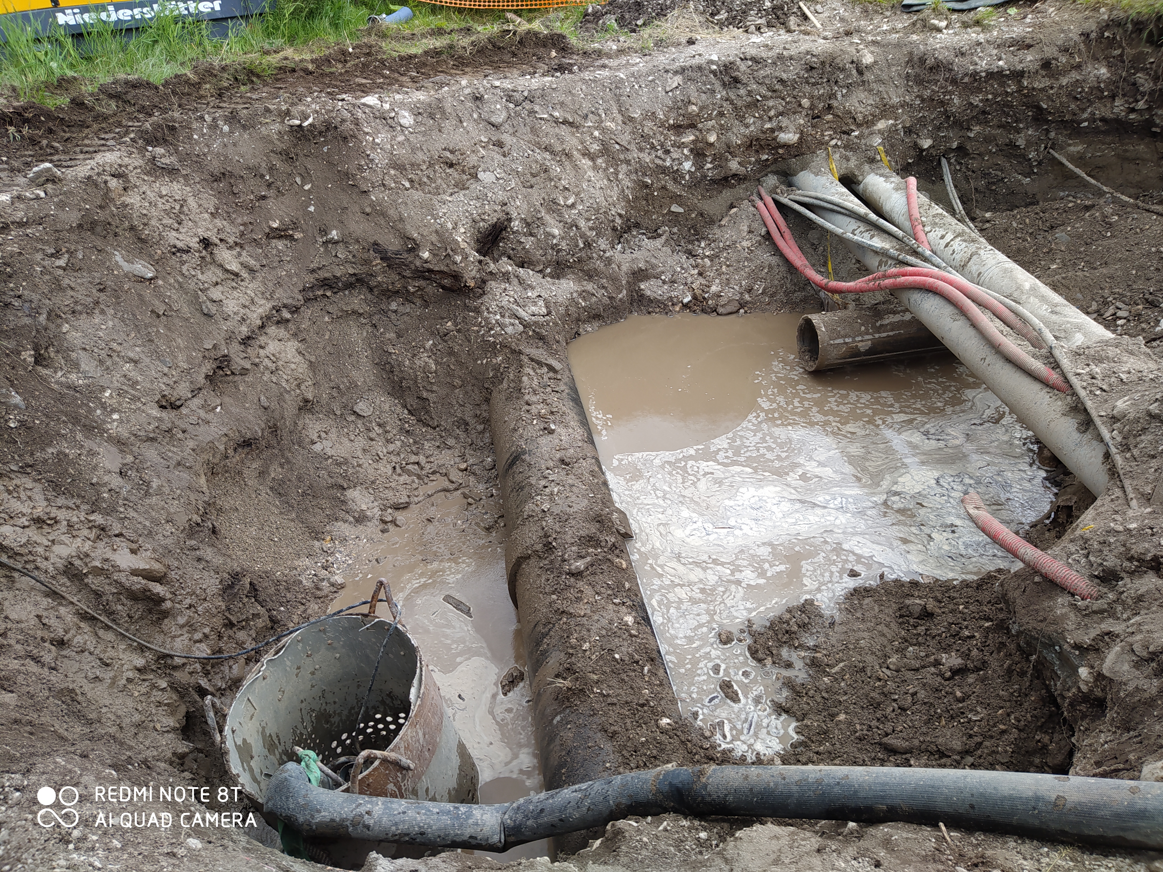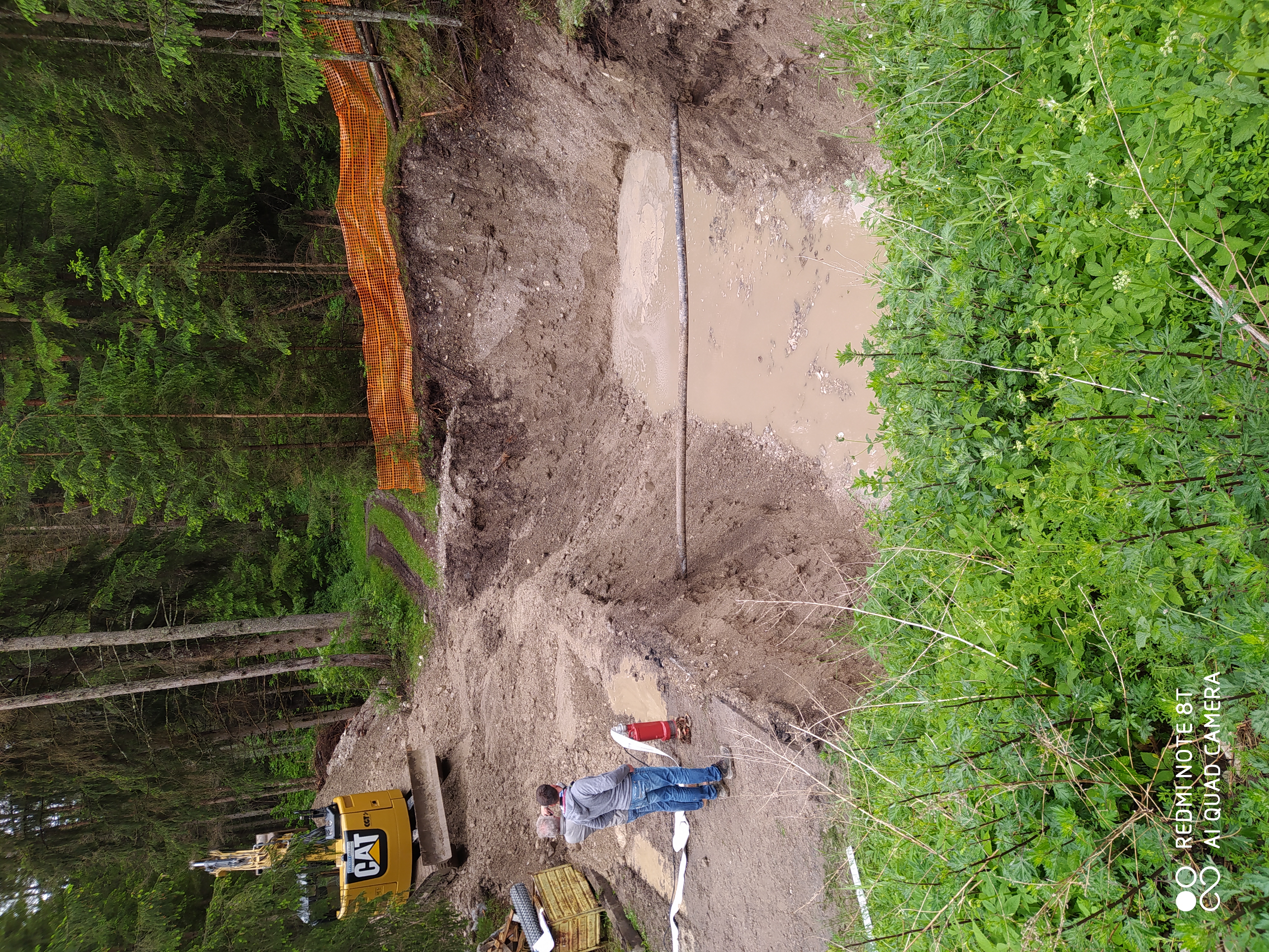 Durante le tempeste del 5-6.08.2017 il collettore principale di Braies è stato distrutto dall'acqua e dai detriti per una lunghezza di circa 20 metri. Dato che in questa zona il collettore è stato posato lungo la riva del torrente, abbiamo deciso di spostarlo in modo tale che rimane in sicurezza dalle tempeste a lungo termine. Poiché il nuovo percorso attraversa i binari ferroviari e la strada statale per una lunghezza di circa 40 metri, abbiamo scelto un metodo di costruzione senza scavo. Il resto è stato scavato e posato nel solito modo. È stato forato un tubo di protezione in acciaio Ø400mm ed è stato inserito il nuovo tubo di raccolta in PP DN 250 con distanziatori. Sono stati installati anche 4 nuovi pozzetti.